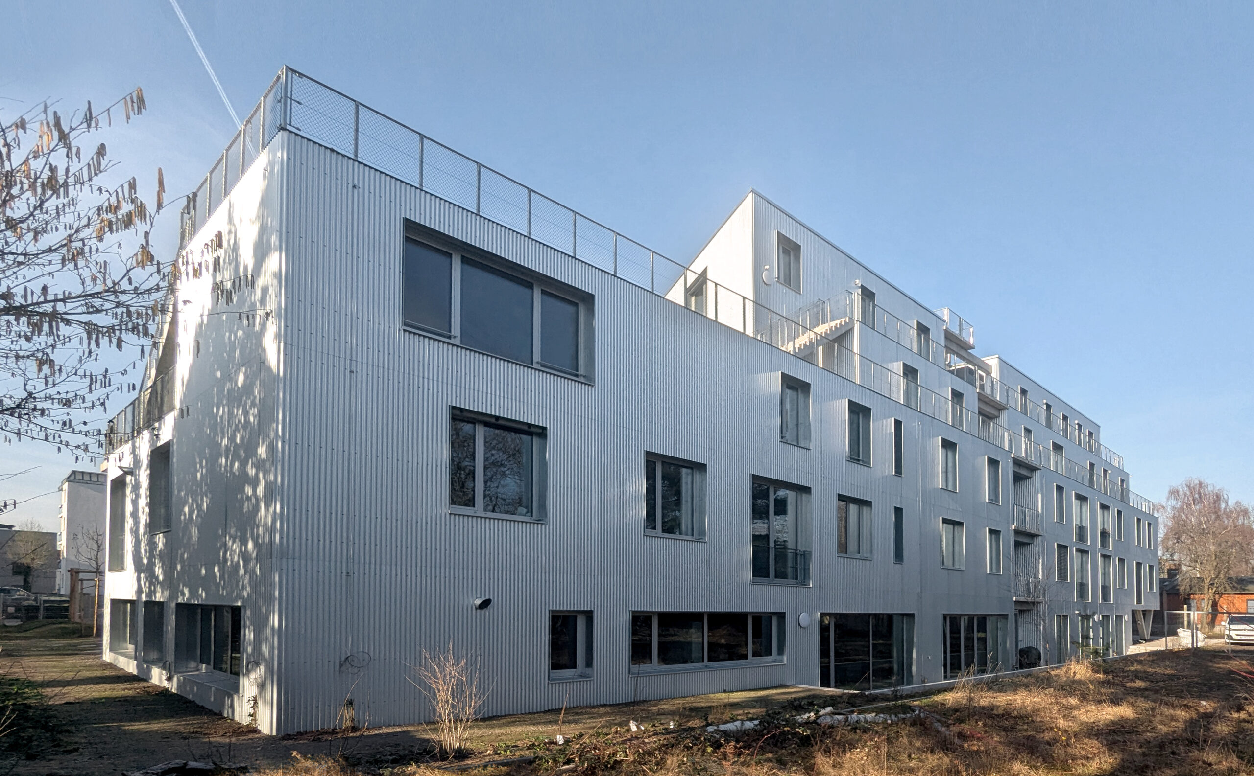 Kolle ist ein gemeinschaftliches Wohnprojekt für 42 Bewohner*innen mit Coworking Space, einer Beratungsstelle sowie Kreativwerkstätten im Erdgeschoss